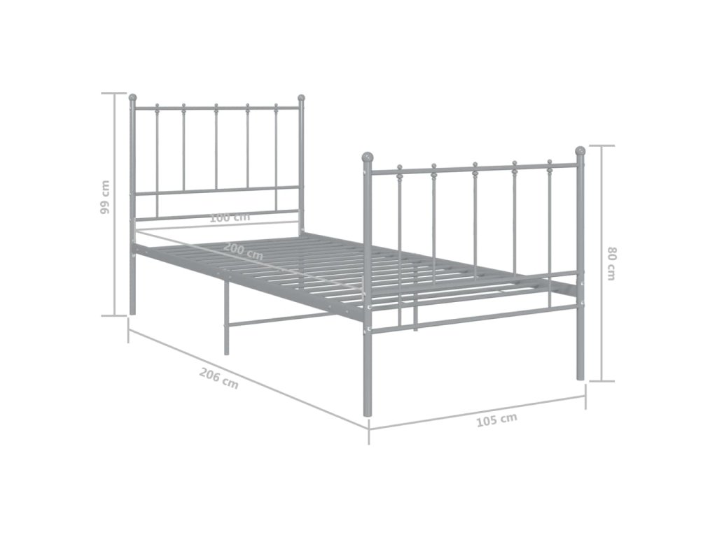 vidaXL Posteľný rám sivý kov 100x200 cm