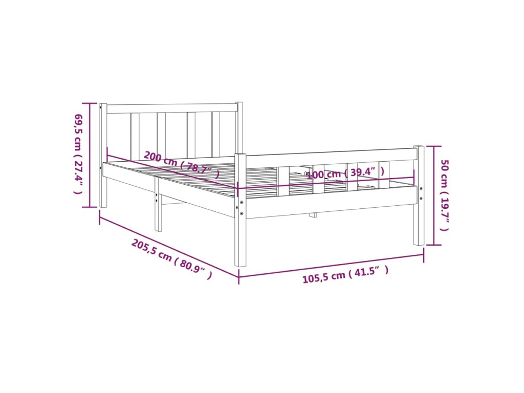 - Rozmery rámu postele: 205,5 x 105,5 x 69,5 cm (D x Š x V)