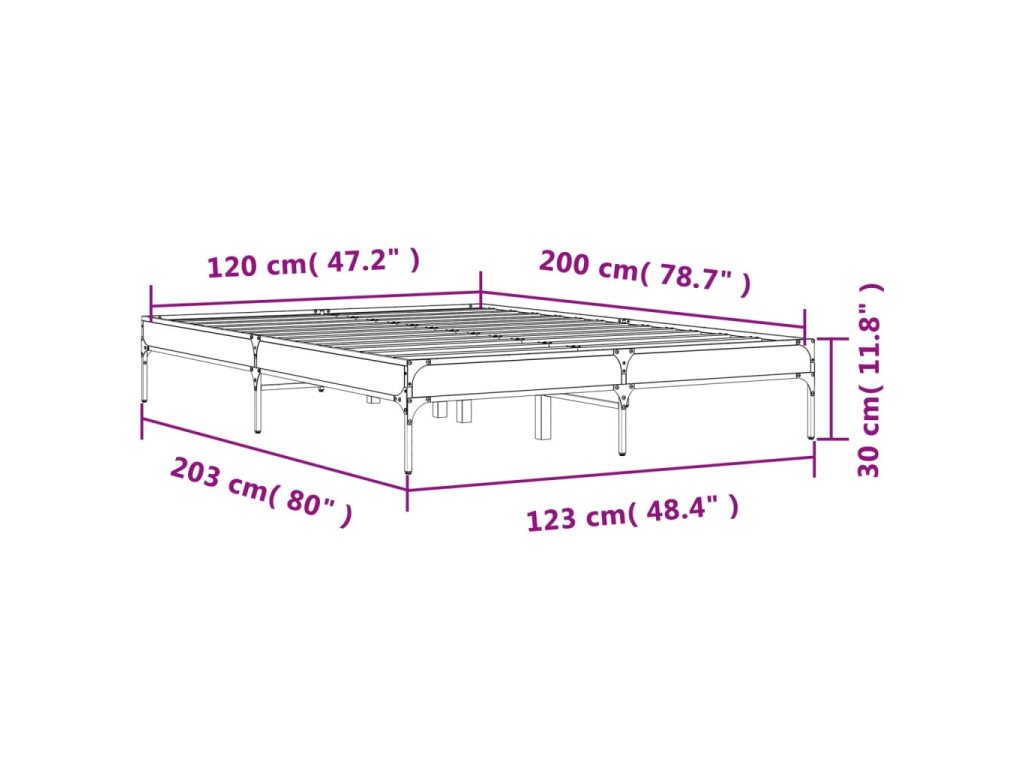 vidaXL Posteľný rám sivý sonoma 120x200 cm kompozitné drevo a kov