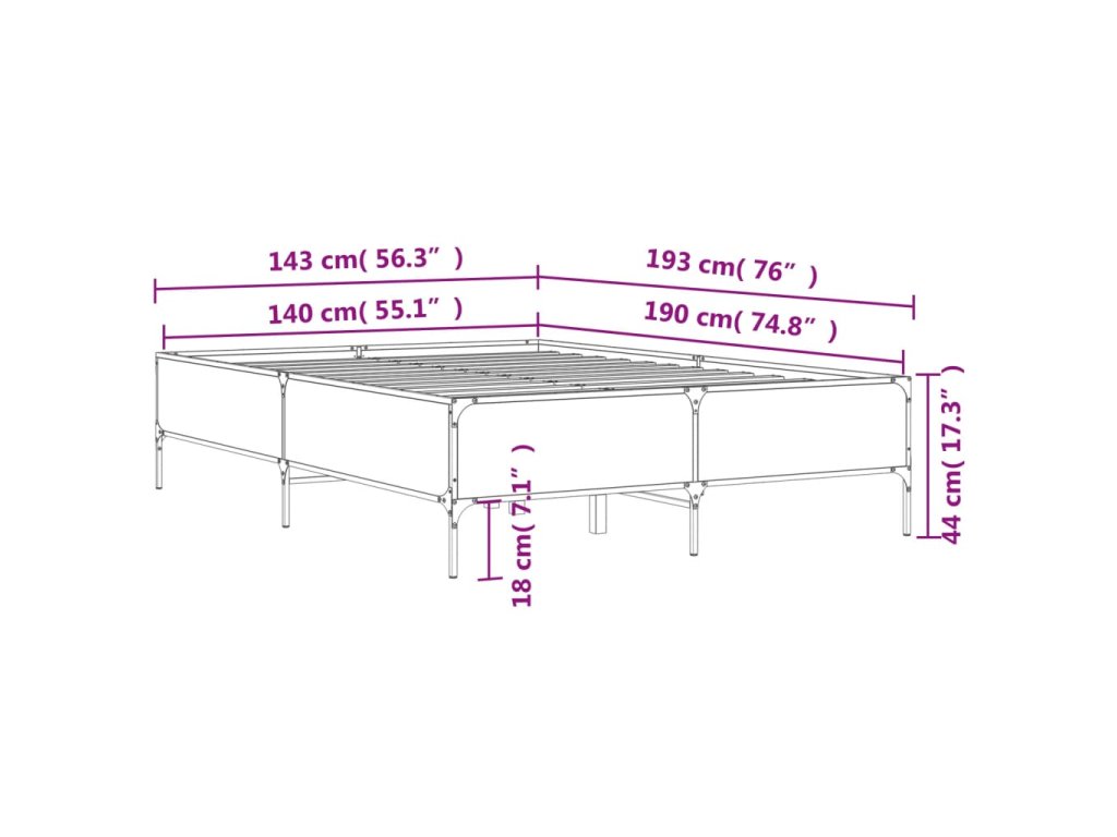 vidaXL Posteľný rám sivý sonoma 140x190 cm kompozitné drevo a kov