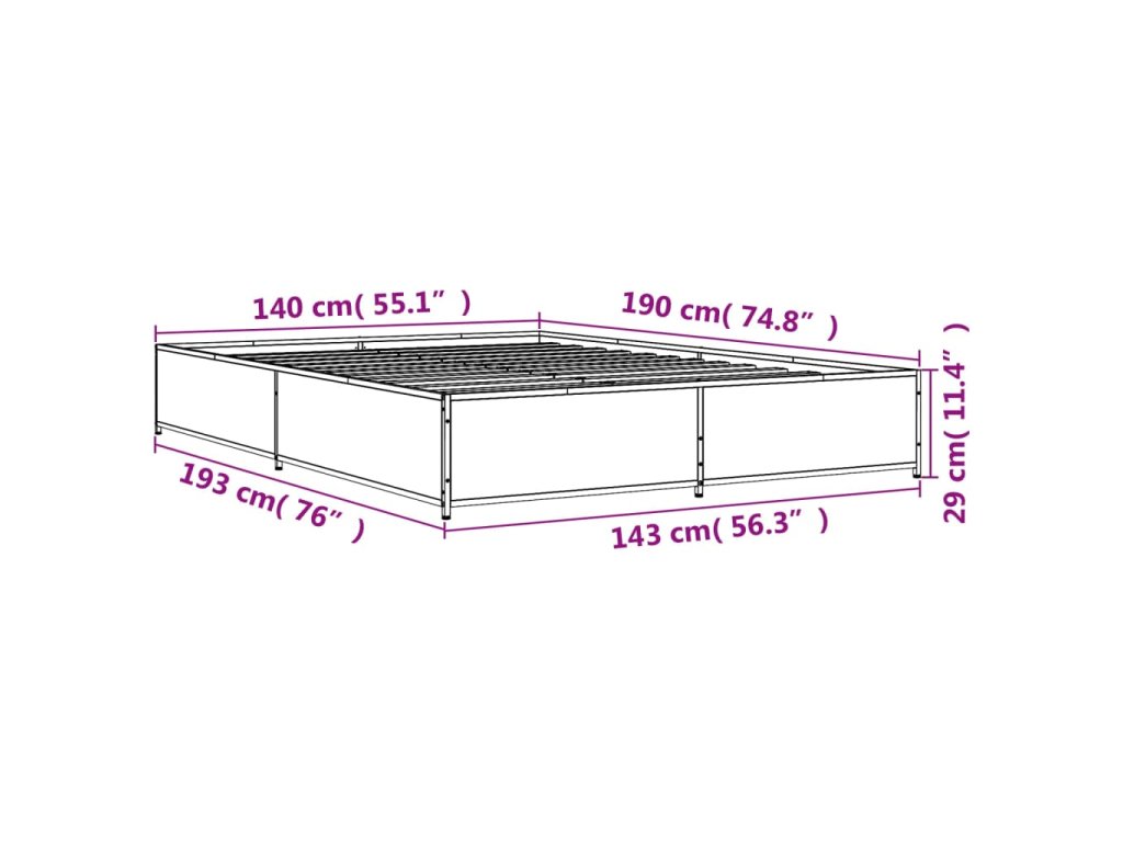 vidaXL Posteľný rám sivý sonoma 140x190 cm kompozitné drevo a kov