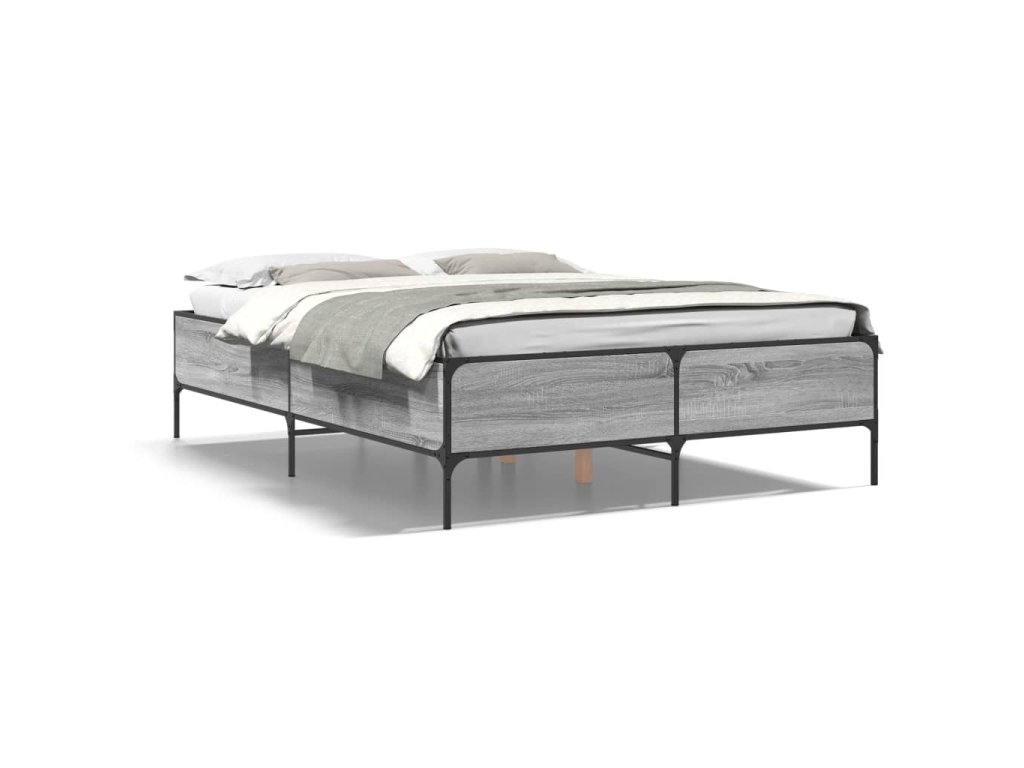 vidaXL Posteľný rám sivý sonoma 140x200 cm kompozitné drevo a kov