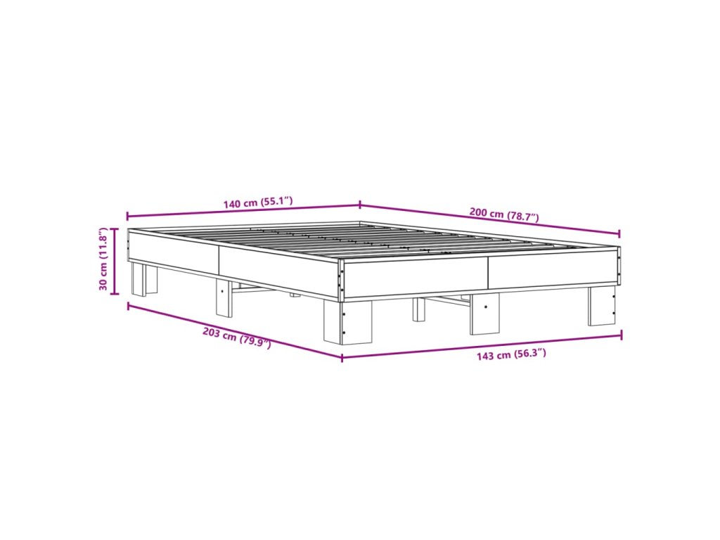 vidaXL Posteľný rám sivý sonoma 140x200 cm kompozitné drevo a kov