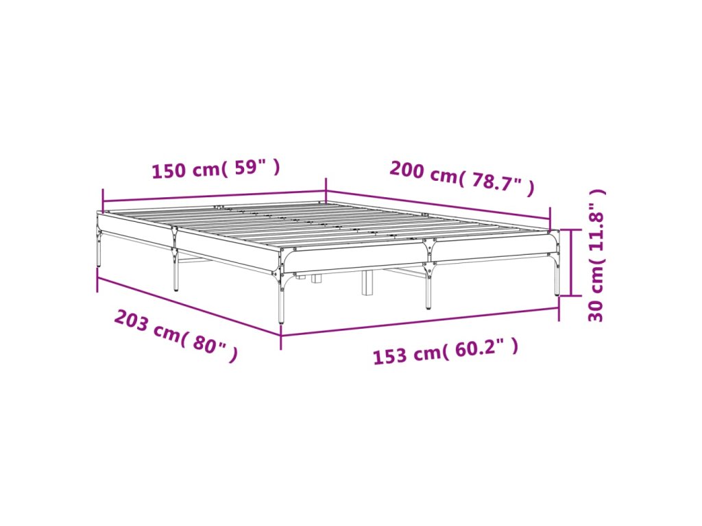 vidaXL Posteľný rám sivý sonoma 150x200 cm kompozitné drevo a kov