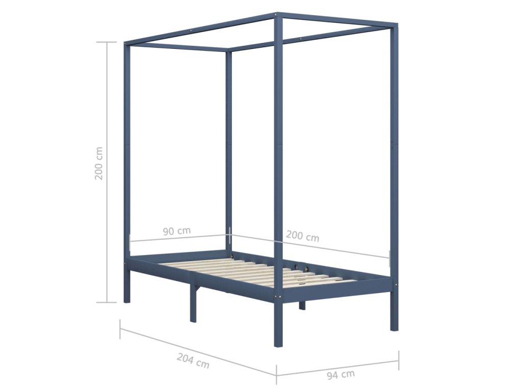 vidaXL Posteľný rám so strieškou sivý 90x200 cm borovicový masív