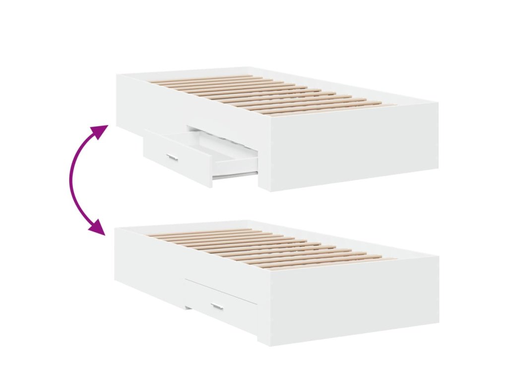 vidaXL Posteľný rám so zásuvkami biely 100x200 cm kompozitné drevo