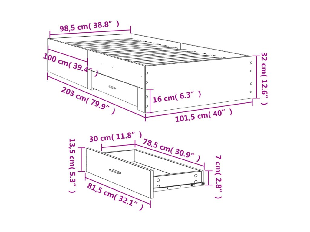 - Rozmery zásuvky postele (každá): 81,5 x 31,5 x 13,5 cm (D x Š x V)