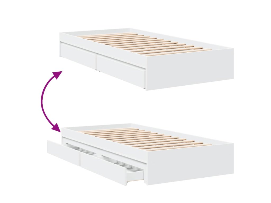 vidaXL Posteľný rám so zásuvkami biely 75x190 cm kompozitné drevo
