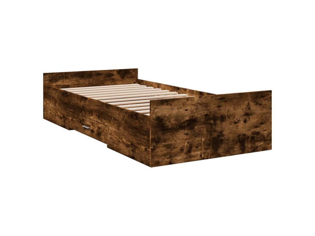 vidaXL Posteľný rám so zásuvkami dymový dub 75x190 cm kompozitné drevo
