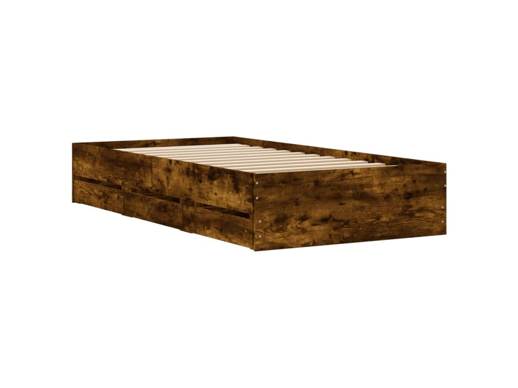 vidaXL Posteľný rám so zásuvkami dymový dub 75x190 cm kompozitné drevo
