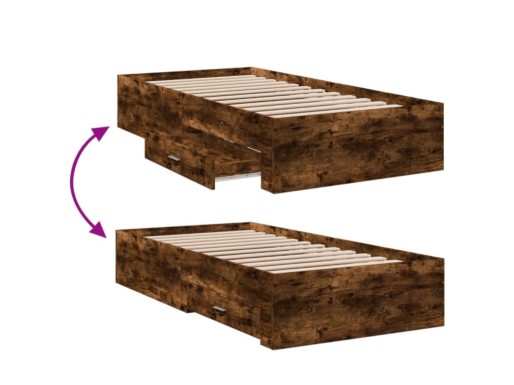 vidaXL Posteľný rám so zásuvkami dymový dub 90x200 cm kompozitné drevo