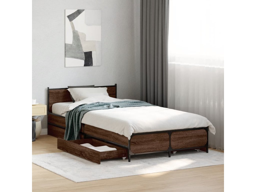 vidaXL Posteľný rám so zásuvkami hnedý dub 75x190 cm kompozitné drevo