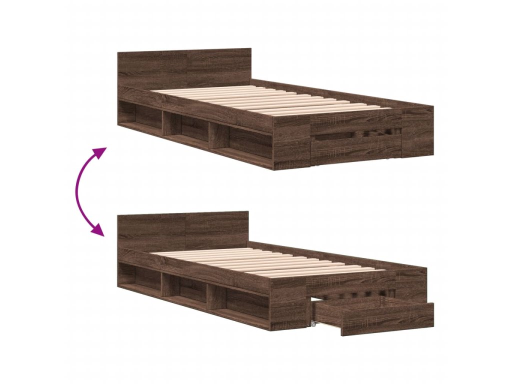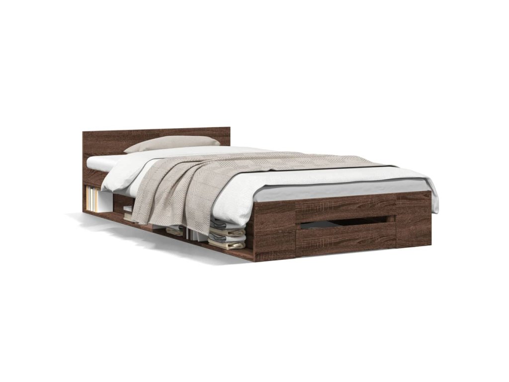 vidaXL Posteľný rám so zásuvkami hnedý dub 90x190 cm kompozitné drevo