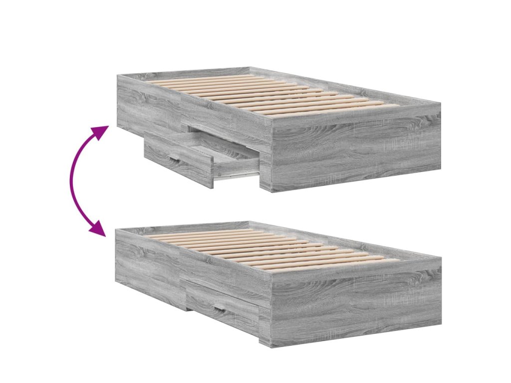 vidaXL Posteľný rám so zásuvkami sivý sonoma 100x200cm kompozit. drevo