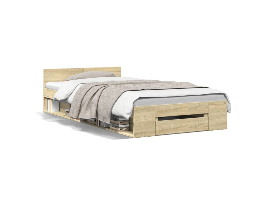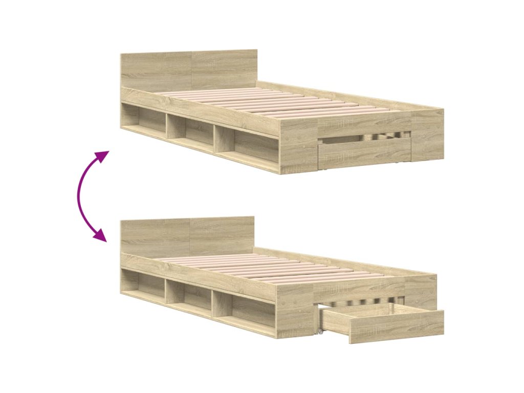 vidaXL Posteľný rám so zásuvkou dub sonoma 100x200 cm kompozitné drevo