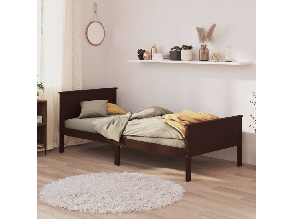 vidaXL Posteľný rám tmavohnedý borovicový masív 100x200 cm