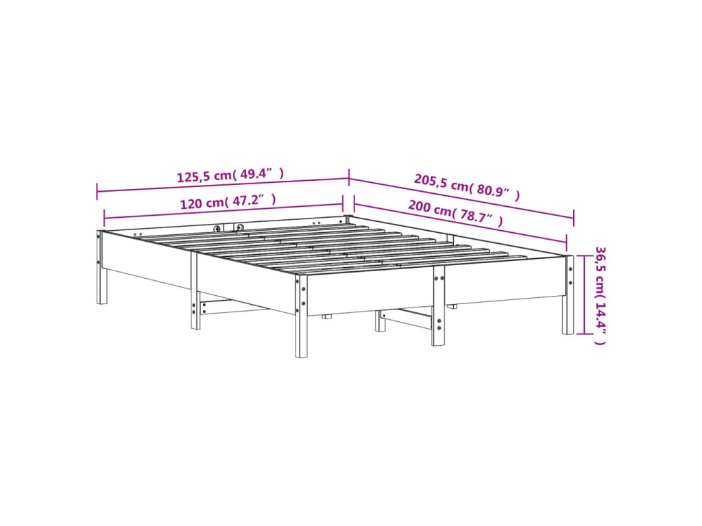 vidaXL Posteľný rám voskovo hnedý 120x200 cm masívna borovica