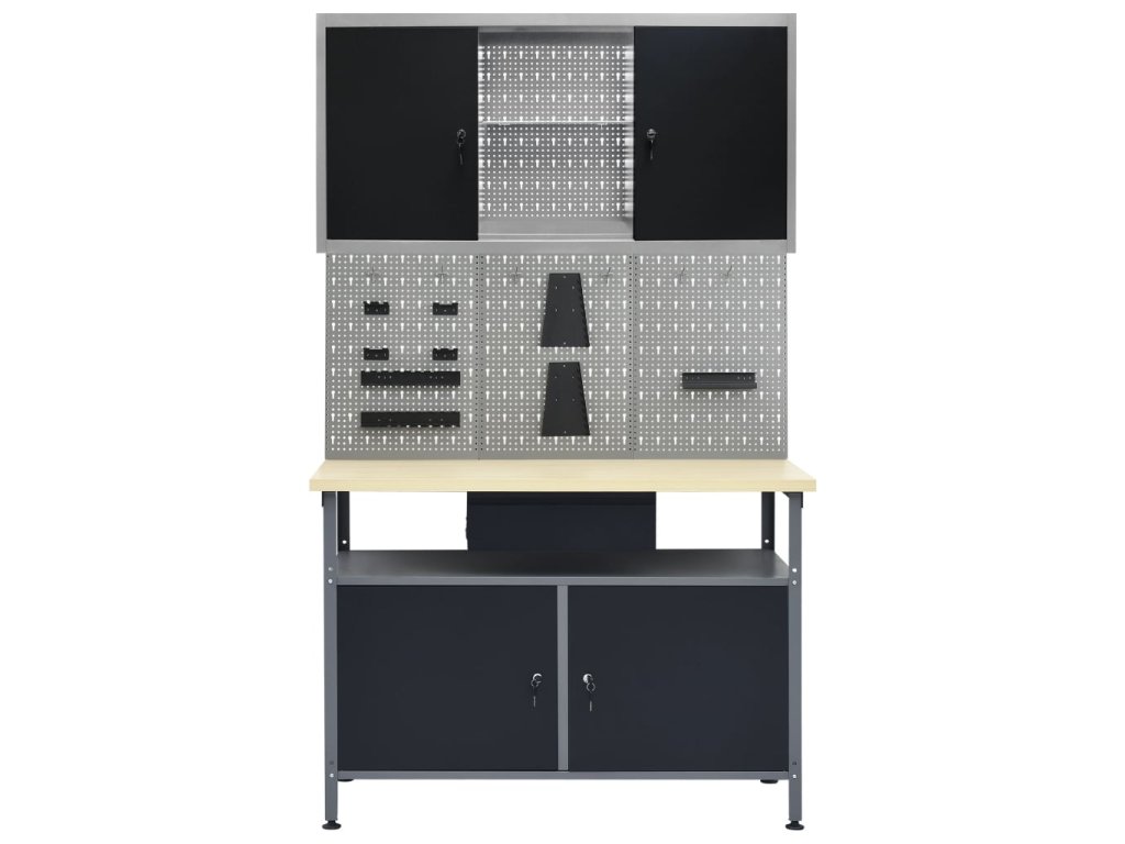 Táto sada je kombináciou 1 pracovného stola, 4 nástenných panelov a 2 nástenných skriniek, ktoré budú praktickým riešením pre vašu dielňu alebo garáž.