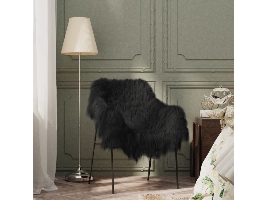 vidaXL Prehoz na stoličku z islandskej ovčej kože, čierny 70x110 cm