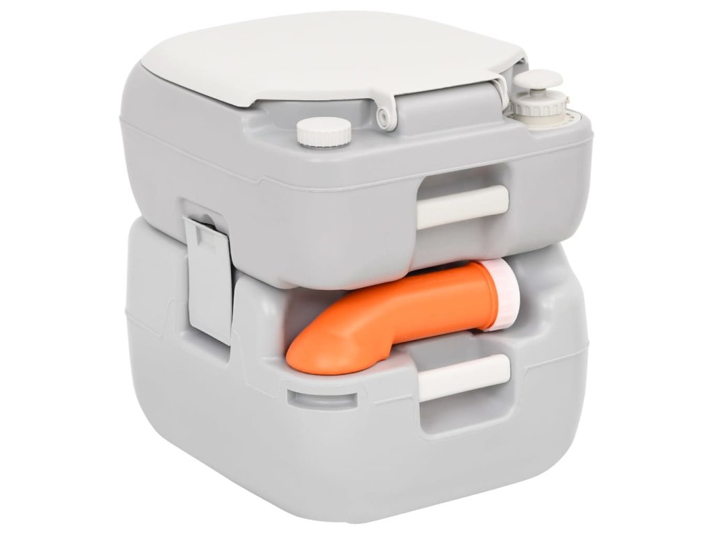 vidaXL Prenosné kempingové WC šedo-biele 22+12 l HDPE
