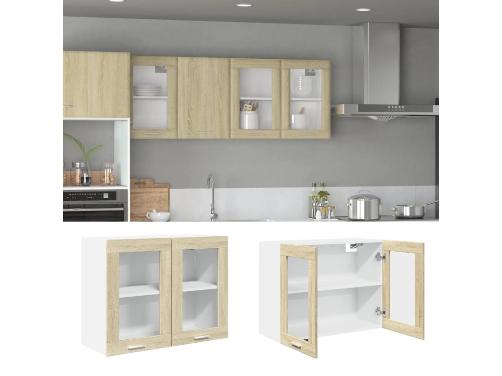 vidaXL Presklená závesná skrinka “Lyon”, sonoma 80x31x60 cm