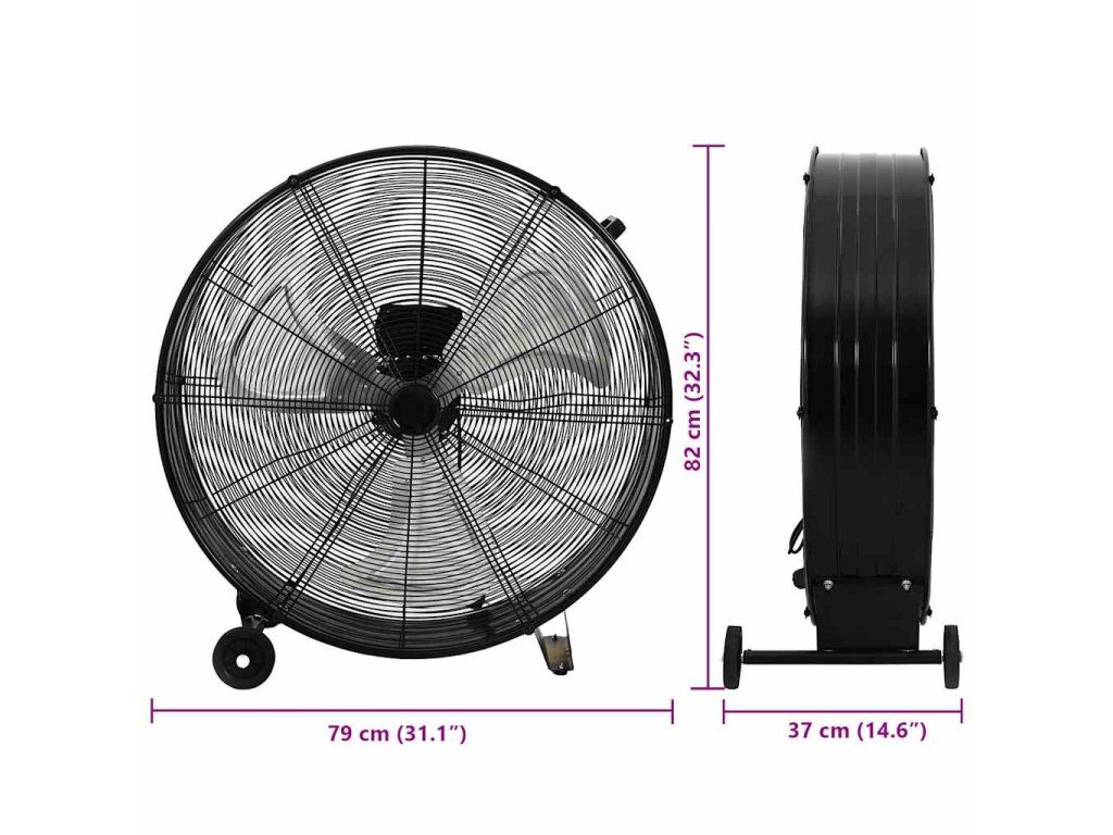 vidaXL Priemyselný bubnový ventilátor 77 cm 187,7 W, čierny