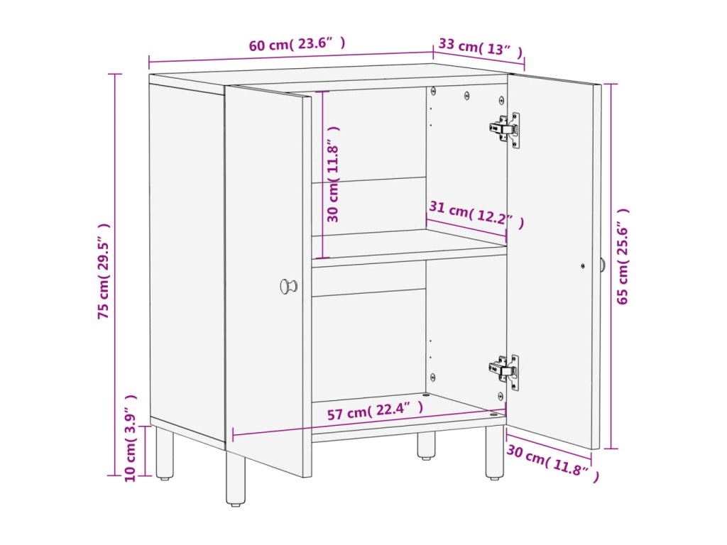 - Pevné nohy: Železné nohy dodávajú bočnej skrinke robustnosť a stabilitu.