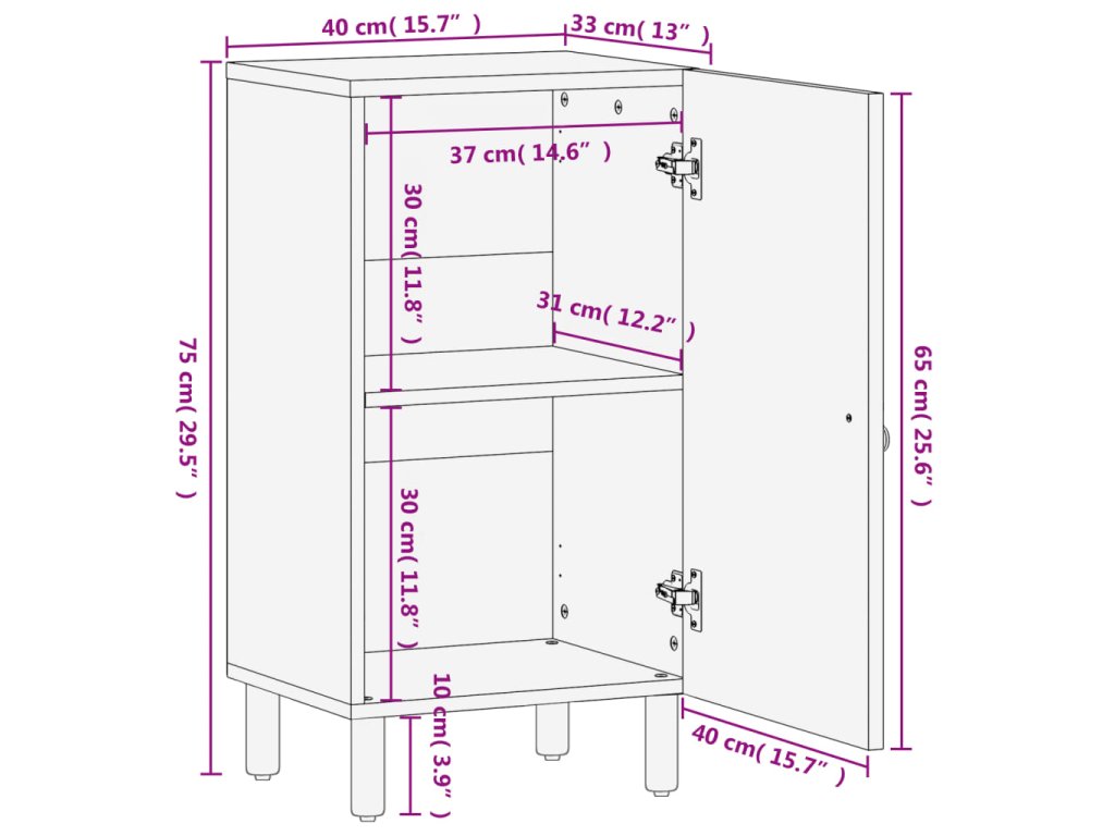 - Pevné nohy: Železné nohy dodávajú bočnej skrinke robustnosť a stabilitu.
