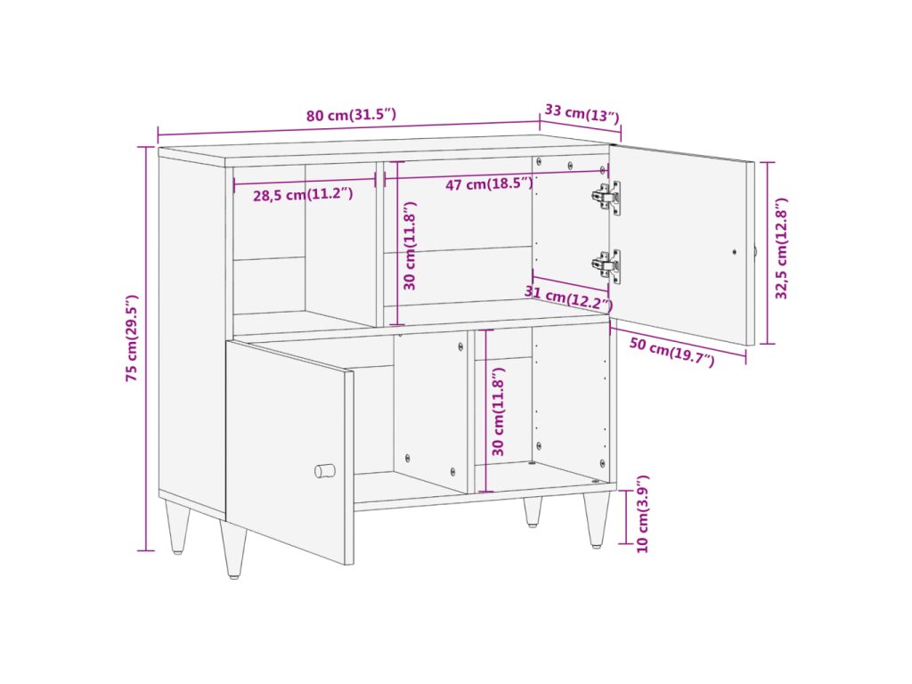 vidaXL Príručná skrinka 80x33x75 cm, mangový masív