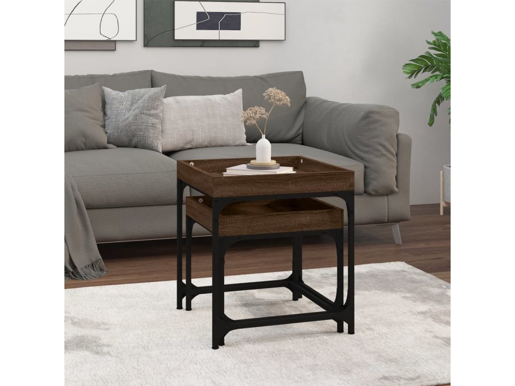 vidaXL Príručné stolíky 2 ks hnedý dub spracované drevo