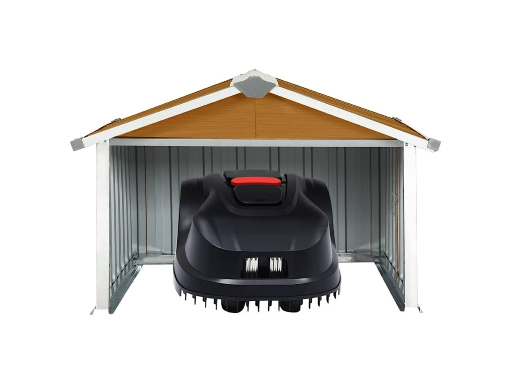 Vďaka pozinkovanej oceľovej konštrukcii je skladovacia záhradka pevná a stabilná. Nabíjaciu stanicu môžete umiestniť do garáže a robotická kosačka do nej vstúpi vždy, keď ju bude potrebné nabiť. Robotická kosačka automaticky vojde dovnútra a dobre tam zostane, kým znova pôjde von kosiť trávu.