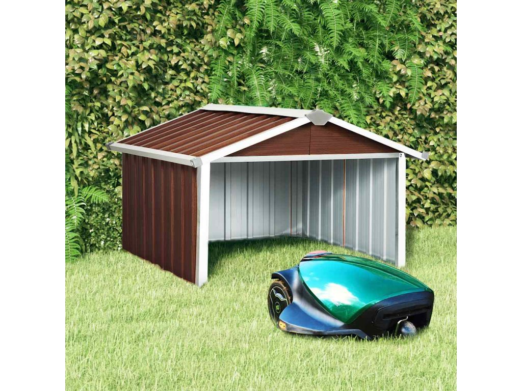 vidaXL Prístrešok na robotickú kosačku 92x97x63 cm oceľový hnedý