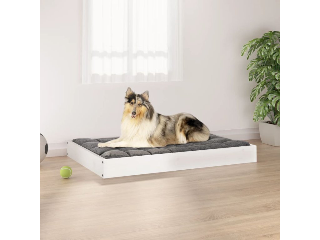 vidaXL Psia posteľ biela 91,5x64x9 cm borovicový masív