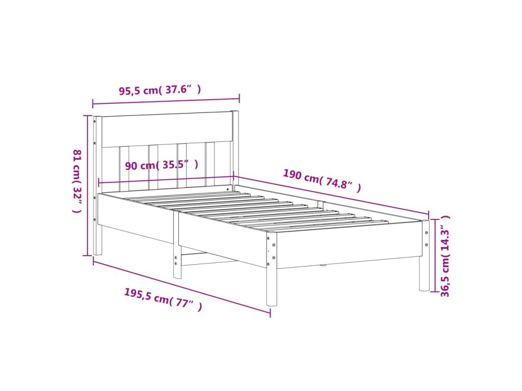 vidaXL Rám postele s čelom 90x190 cm masívne drevo