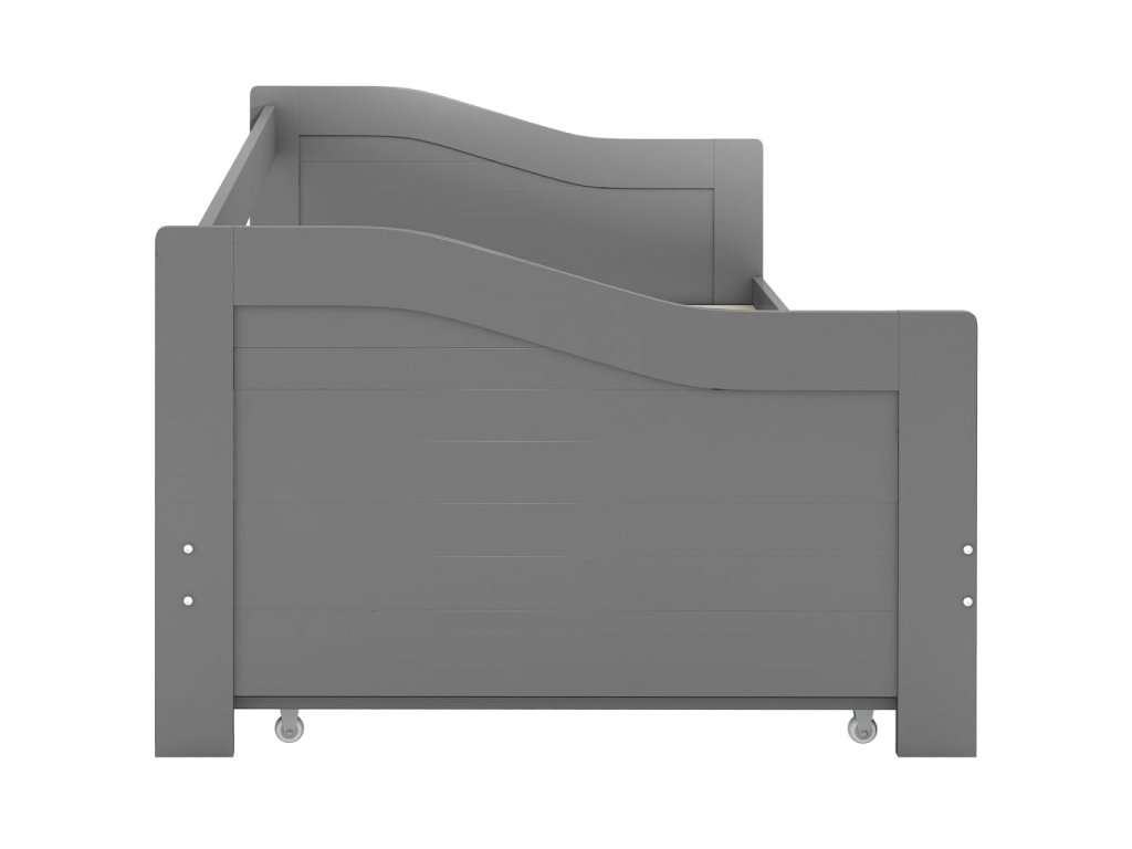 Tento kus nábytku vybavený výsuvnou spodnou posteľou so 4 kolieskami, je cez deň pohodlná pohovka a večer pohodlná posteľ. Táto rozkladacia pohovka šetrí priestor vo vašej izbe a zároveň poslúži ako lôžko pre dve osoby, je to teda výborná voľba pre byty s obmedzeným priestorom. Spodné lôžko je vybavené bočnicou, ktorá ochráni používateľa pred pádom z postele. Rám postele tvorí pevná drevená konštrukcia, ktorá je zárukou dlhej životnosti a je vhodná pre každodenné používanie. Montáž je jednoduchá.