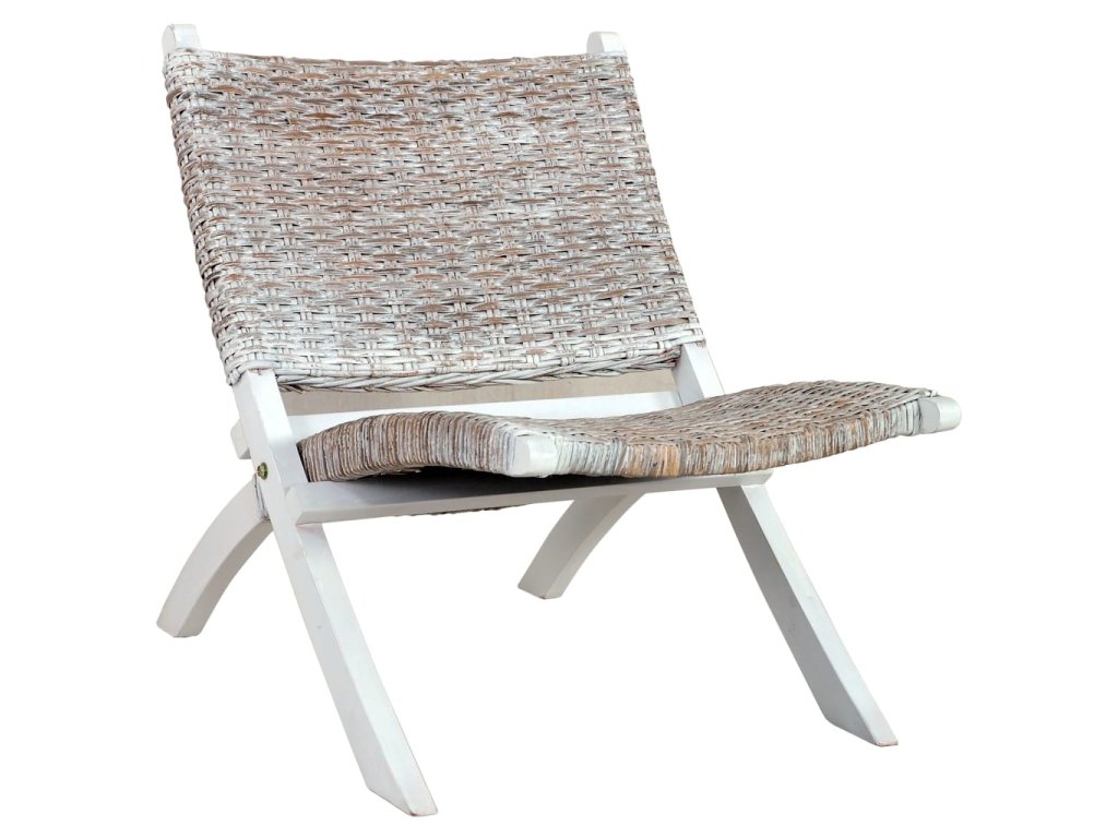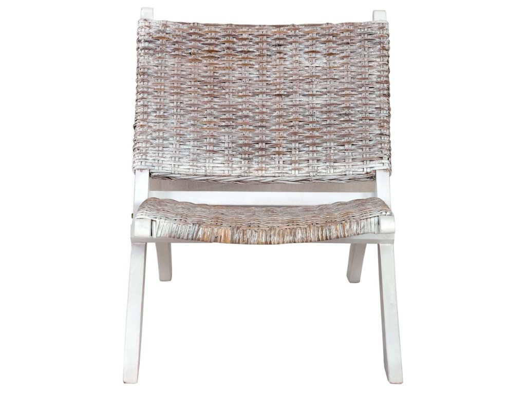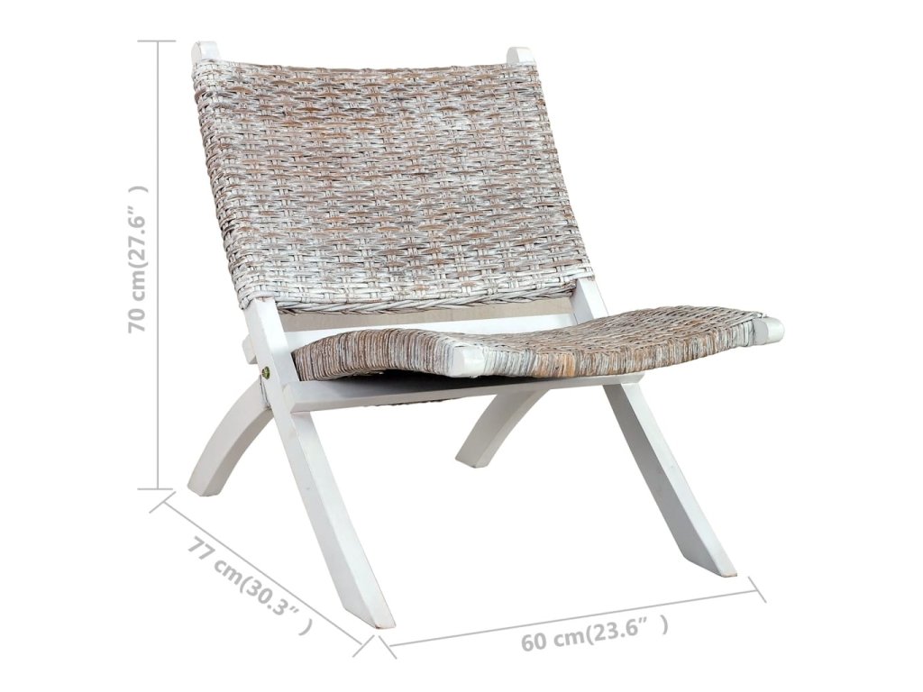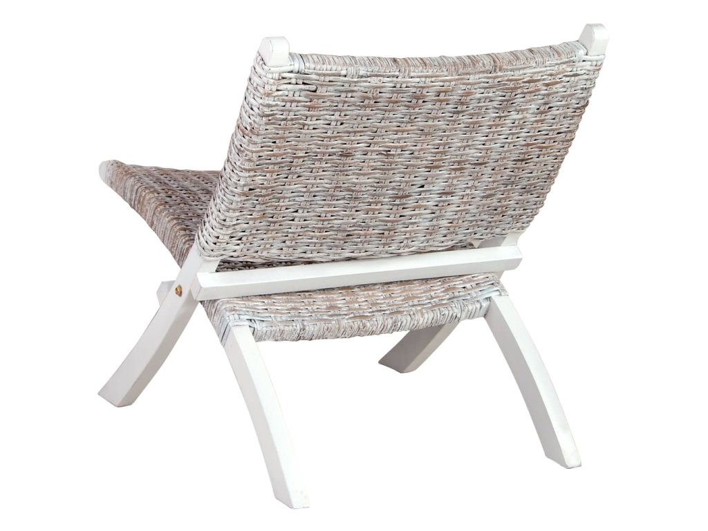 vidaXL Relaxačné kreslo, biele, prírodný kubu ratan a mahagónový masív