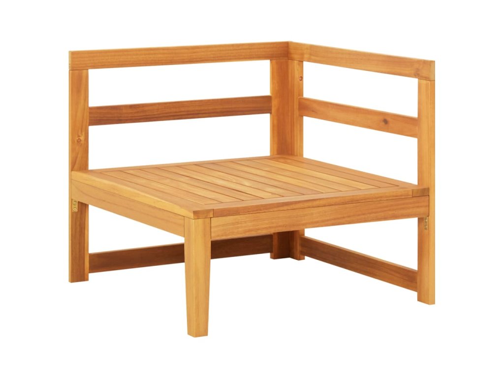 Táto záhradná rohová sedačka je vyrobená z masívneho akáciového dreva, tvrdého dreva s bohatou štruktúrou. Táto krásne navrhnutá vonkajšia rohová pohovka je stabilná, odolná a pútavá. Vďaka vynikajúcemu remeselnému spracovaniu a krásnej štruktúre dreva sa každý kus mierne líši od ostatných kusov. Pribalené vankúše poskytnú dokonalé pohodlie pri odpočinku.