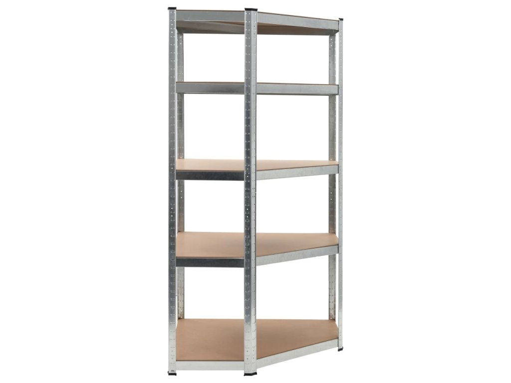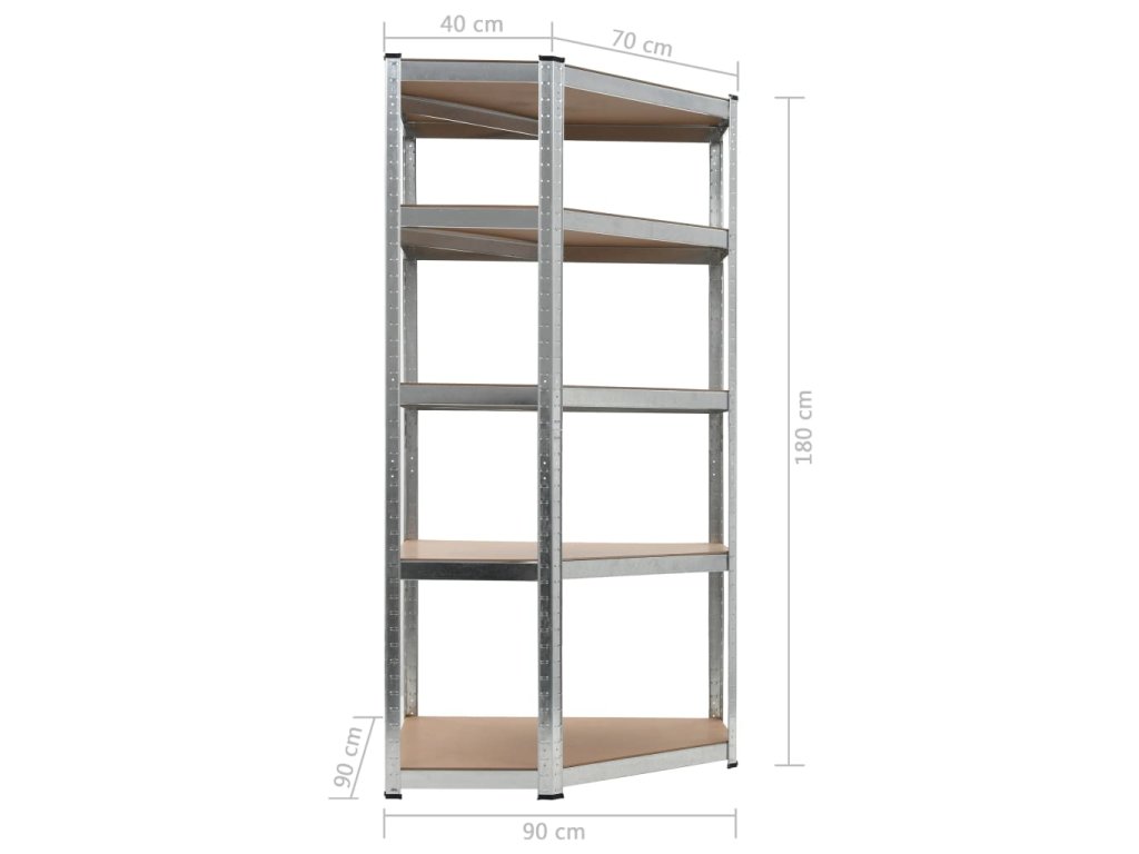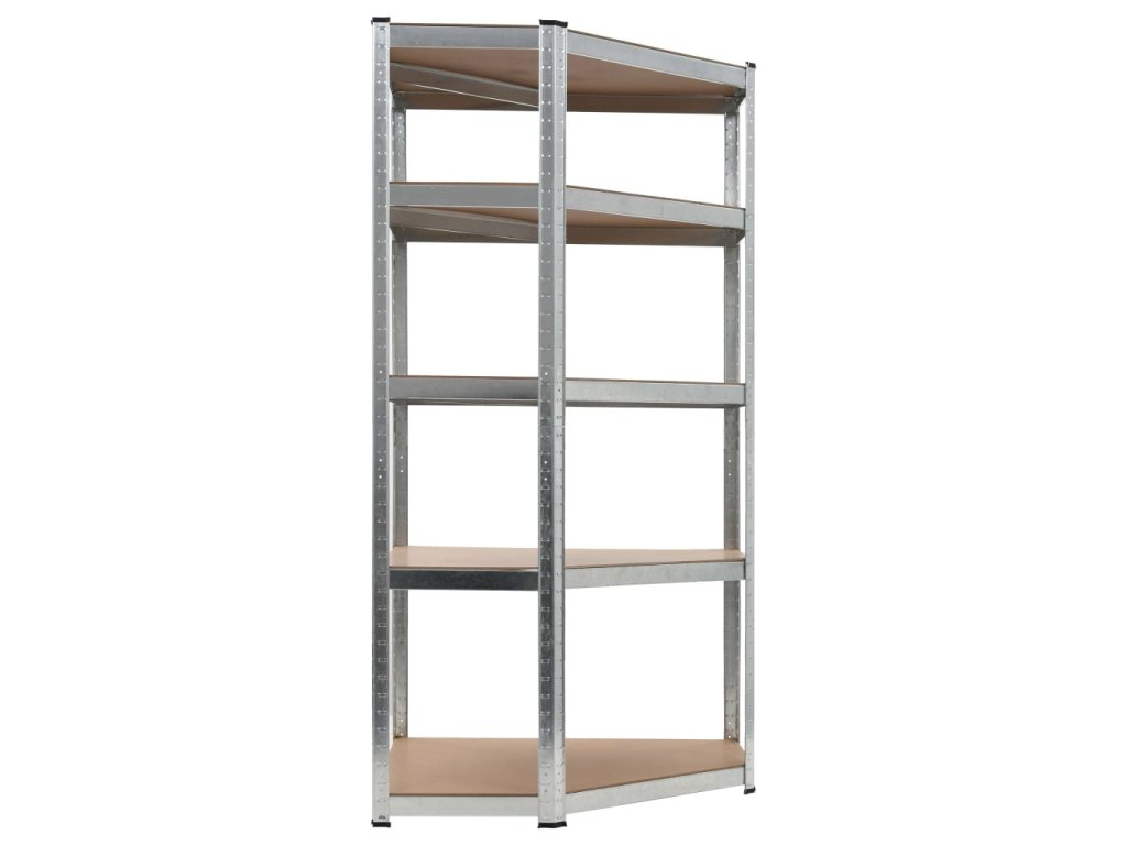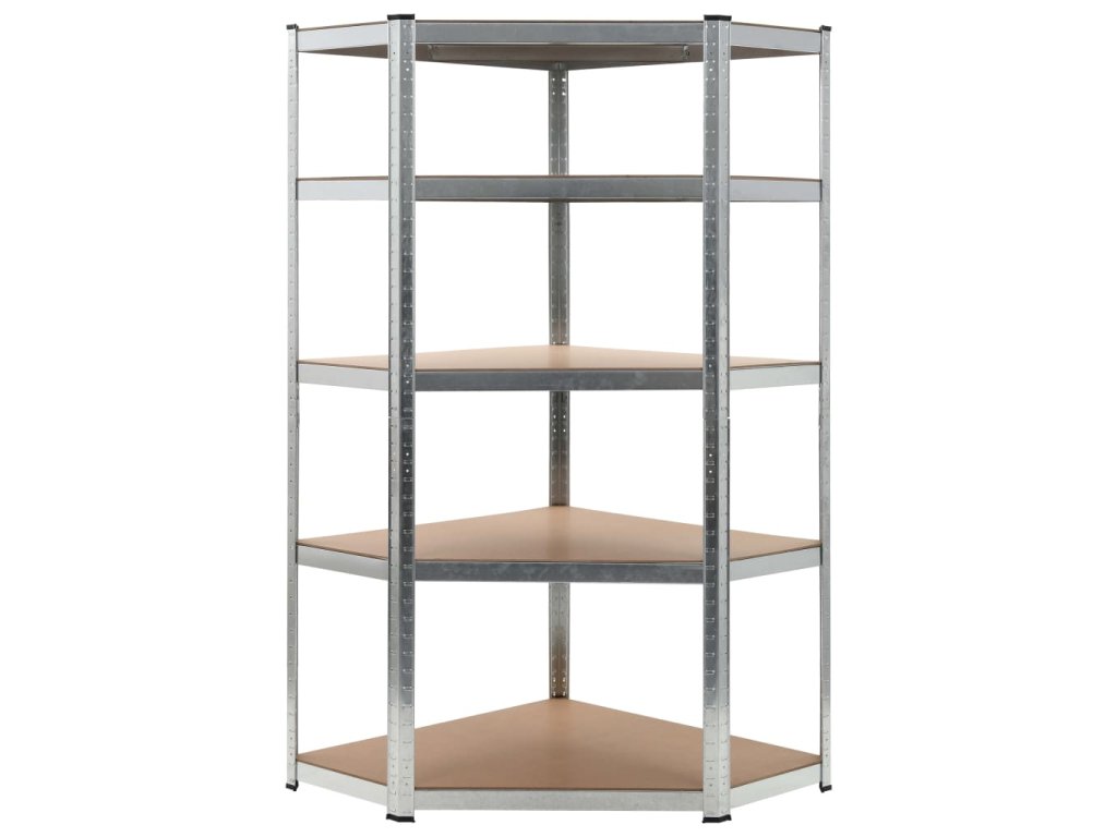 vidaXL Rohový regál s 5 policami, strieborný, oceľ a kompozitné drevo