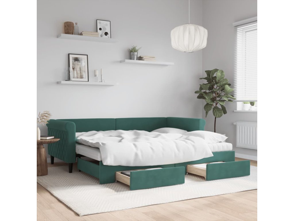 vidaXL Rozkladacia denná posteľ a zásuvky tmavozelená 90x200 cm zamat