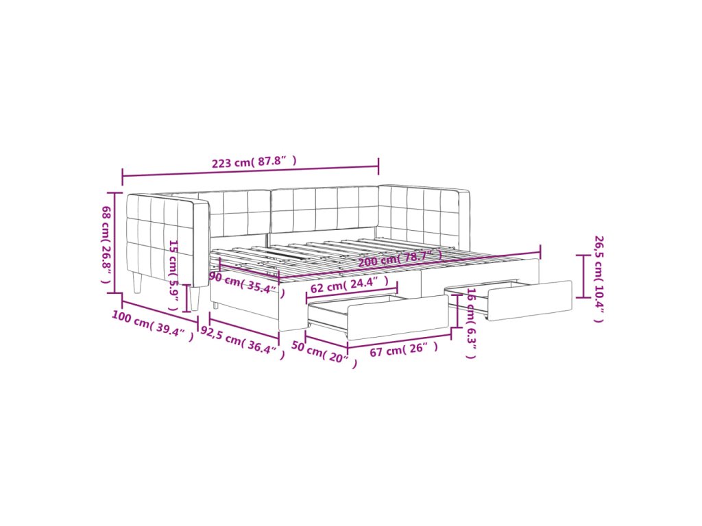 Táto denná posteľ 2 v 1 s rozkladacou posteľou, ktorá slúži ako pohovka aj posteľ, bude praktickým a pútavým doplnkom vašej obývačky alebo spálne.