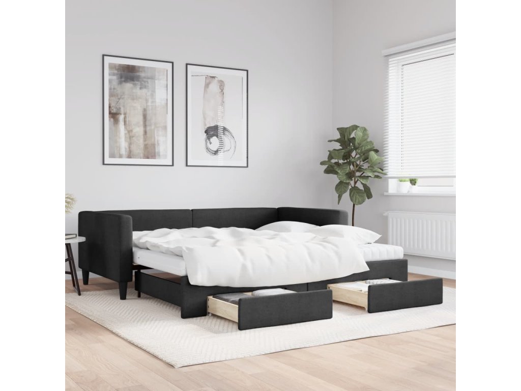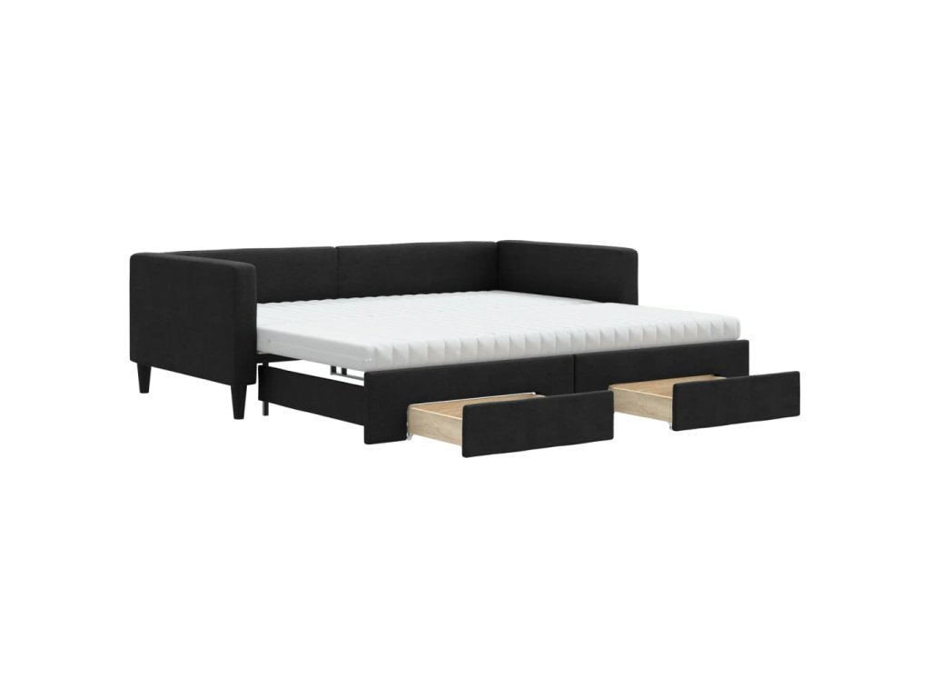 vidaXL Rozkladacia denná posteľ so zásuvkami čierna 100x200 cm látka