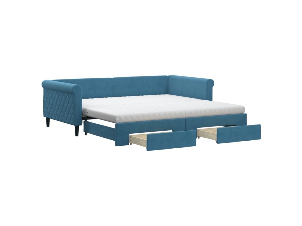 vidaXL Rozkladacia denná posteľ so zásuvkami modrá 100x200 cm zamat