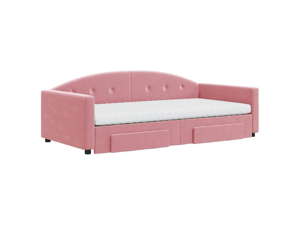 vidaXL Rozkladacia denná posteľ so zásuvkami ružová 100x200 cm zamat