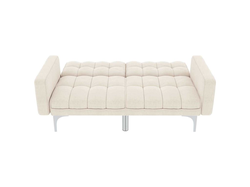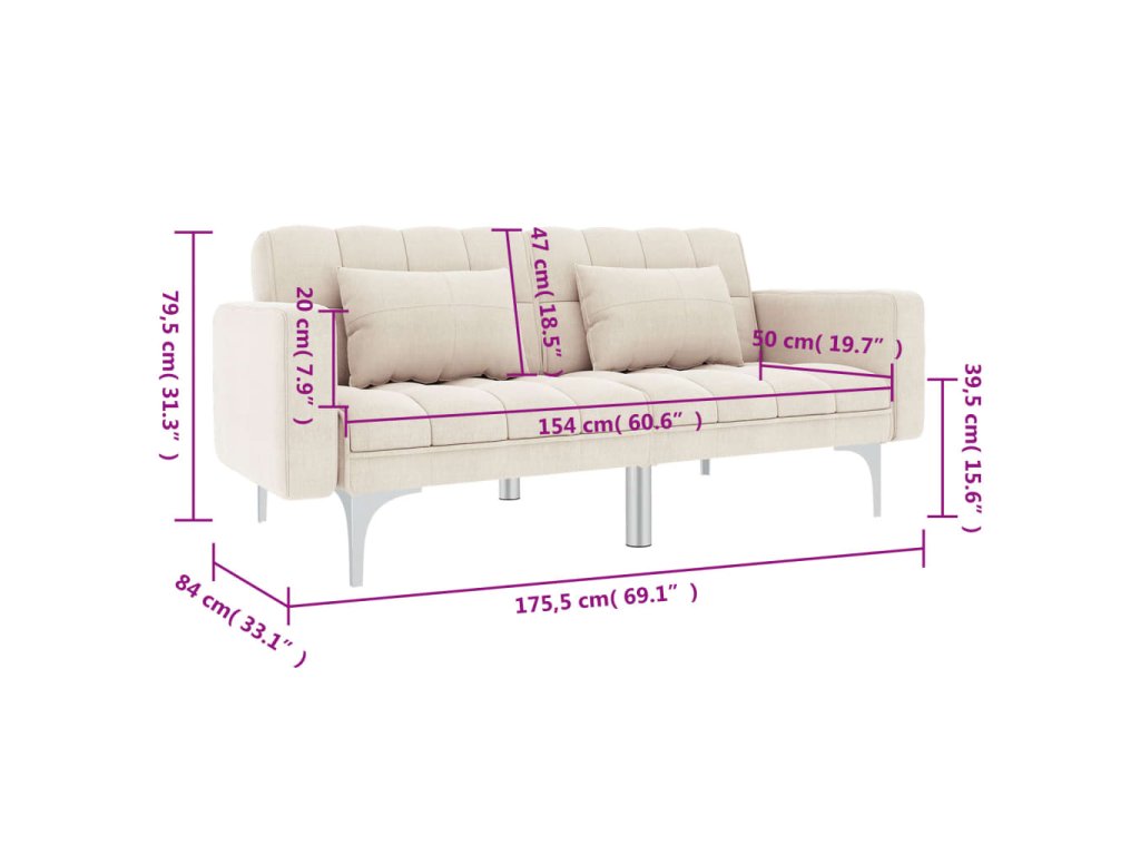 Drevený rám a kovové nožičky zabezpečujú stabilitu pohovky a hrubé čalúnenie poskytuje optimálny komfort. Táto pohovka sa dá rýchlo a ľahko premeniť z gauča na posteľ a naopak. Keď ju používate ako gauč, môžete si vybrať z 3 rôznych sklonov operadla. Dva dodávané vankúše zvyšujú pohodlie počas sedenia.