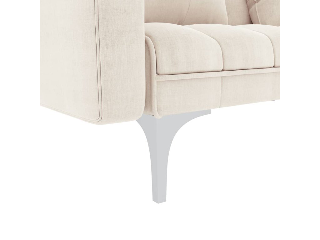 - Materiál: Drevený rám + látkové čalúnenie + kovové nohy