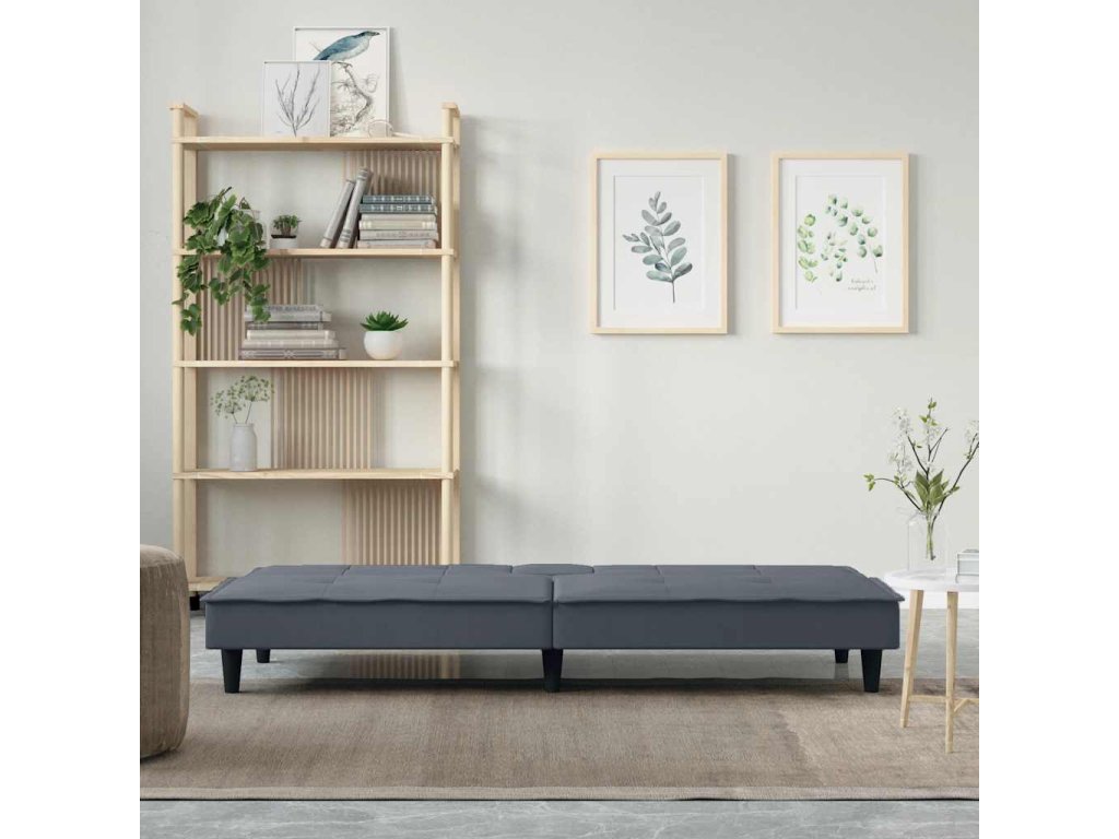 vidaXL Rozkladacia pohovka s držiakmi pohárov tmavosivá zamat