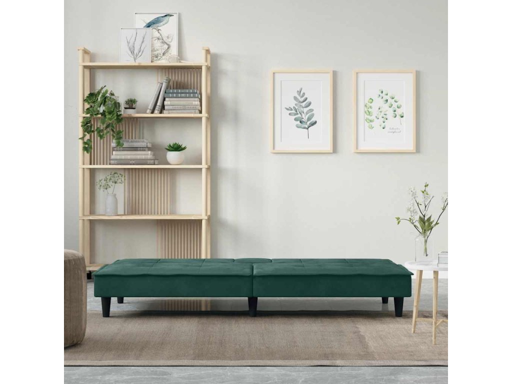 vidaXL Rozkladacia pohovka s držiakmi pohárov tmavozelená zamat