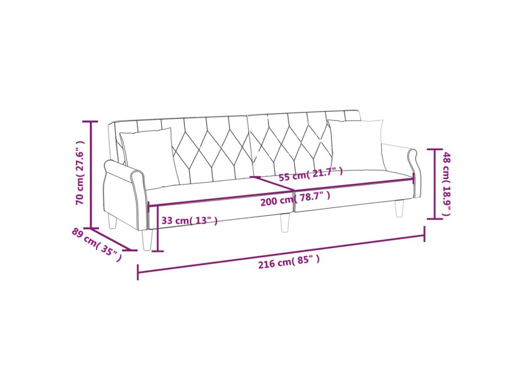 - Pohodlné sedenie: Pohovka na spanie je veľmi pohodlná vďaka husto čalúneným sedadlám, opierkam rúk a operadlám.