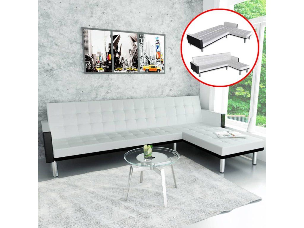 vidaXL Rozkladacia pohovka v tvare L, umelá koža, biela