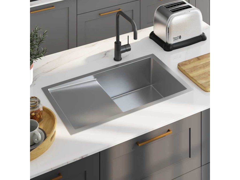 Vychutnajte si výhody nášho kuchynského drezu s moderným dizajnom s čistými líniami. Z kvalitného umývadla s odkvapom v hodvábne hladkom saténovom prevedení vyžaruje elegancia a sofistikovanosť. Tento drez sa hodí do každej kuchyne!